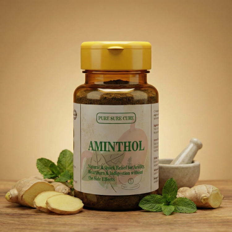 Aminthol stops acidity, bloating, GERD and heartburn at the root—so your stomach learns to work properly again. No rebound. No dependency.